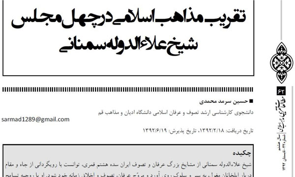 مثلا در مقاله زیر در مجلّه «مطالعات تقریبی مذاهب اسلامی» با رتبه علمی – ترویجی، با عنوان: «تقریب مذاهب اسلامی در چهل مجلس علاء الدّوله سمنانی»(22) او را از افراد عارفی دانسته که در قرن هشتم به تقریب مذاهب اسلامی میپرداخته است. آیا کسی که حضرت مهدی(عج) را وفات یافته میداند میواند فهم درستی از تشیّع داشته باشد که به تقریب آن با دیگر مذاهب بپردازد؟ اصلاً این شخص جاهل ارزش توجّه دارد؟ آیا جاهلان به تقریب میپردازند؟